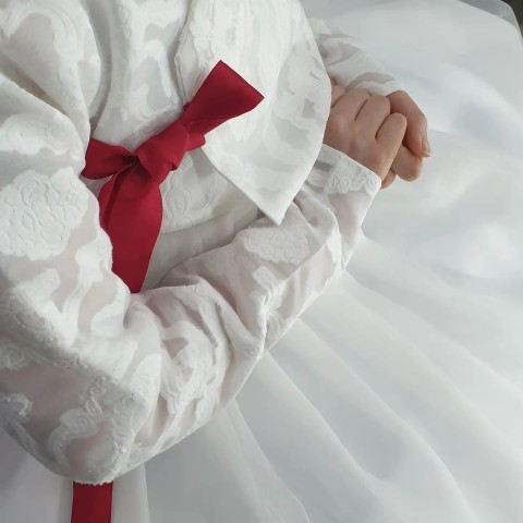 전통적인 여성 의상. 치마는 한 장의 천으로 된 스커트 모양의 아래옷을 말한다. 기장은 가슴에서 복사뼈까지이며, 어깨에서 끈으로 여미어 입게 된다. 저고리는 길이가 30cm 정도의 짧은 상의로서, 통소매, 동정, 가슴에 늘어뜨리는 옷고름으로 요약된다. 저고리는 보통 치마보다 엷은색이 사…